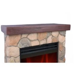 Der El Fuego Elektrokamin Klagenfurt überzeugt durch seine Steinoptik. Die obere Ablagefläche in Holzoptik unterstreicht das rustikale Design des Ofens. Der Umbau besteht aus Polystone und ist daher robust und pflegeleicht.