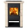 Der Kaminofen Monreale ist eine hochwertige Heizquelle im eleganten Design für Ihren Wohnbereich. Die edle Sandsteinverkleidung harmoniert hervorragend mit dem schwarzen Stahlkorpus.