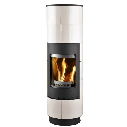 Der Thorma Kaminofen Delia zeigt Ihnen mit seinen handgefertigten Kacheln und seiner großen gebogenen Panoramascheibe das Flammenspiel in ganz neuem Licht. Der Brennraum besteht aus formgepresster Vermiculite und Gussmulde. Stahltür ist mit Panoramasichtscheibe und 2-Fach Verriegelung ausgestattet. Der Kamin kann jeweils oberhalb oder im hinteren Bereich angeschlossen werden. So passt sich der Kamin optimal Ihrem Wohnraum an. Er ist für Räume von bis zu 204m³ geeignet. Die Wärmeleistung beträgt 7,5 kW. Brennstoffe : Scheitholz und Holzbrikett.