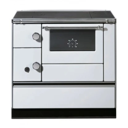 Zusätzlich sorgt eine Flammenbündelungsplatte aus Schamott im Brennraum für äußerst schadstoffarme Verbrennung, optimalen Wirkungsgrad und eine Verringerung der Brennstoffmenge und der Ascherückstände. Eine optimierte Fülltüröffnung und eine große Brennstofflade garantieren zusätzlichen Komfort. Der bayrische Doppelzug sorgt für gleichmäßige Wärmeverteilung und ermöglicht so so optimale Backergebnisse. Der Abgasanschluß befindet sich rechts.